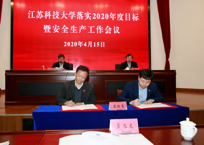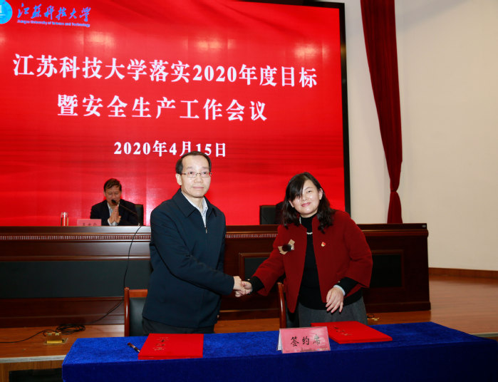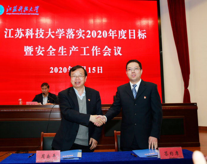 会上,周南平校长与二级单位代表签订《2020年年度目标任务责任书》,校领导与分管部门负责人代表签订《安全生产目标管理责任书》。机关全体中层干部、各民主党派负责人与各学院领导、党支部书记、系主任、部分党代表、高级职称教师代表、机关科级干部、一级安全员分别在主会场、分会场参加会议。
