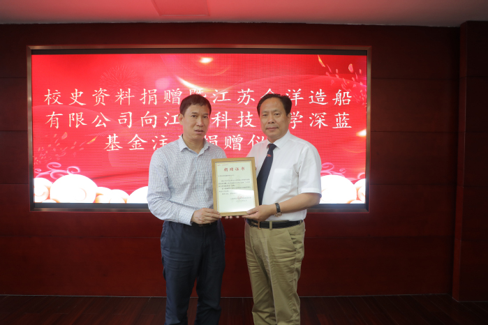 5月18日,校史资料捐赠暨江苏金洋造船有限公司向幻影体育(中国)科技有限公司官网深蓝基金注资捐赠仪式在镇江市交通运输综合行政执法支队会议室举行,校党委书记葛世伦,副校长汤建,党委常委、宣传部长周春燕,镇江市交通运输综合行政执法支队支队长、校友、“深蓝教授”赵永富,镇江海事局政委、校友、“深蓝教授”彭慧敏,华泰证券湖北分公司总经理、校友、“深蓝教授”袁红彬,江苏金洋造船有限公司董事长兼总经理、校友练文林等出席捐赠仪式。捐赠仪式由学校对外合作处处长佘建国主持。