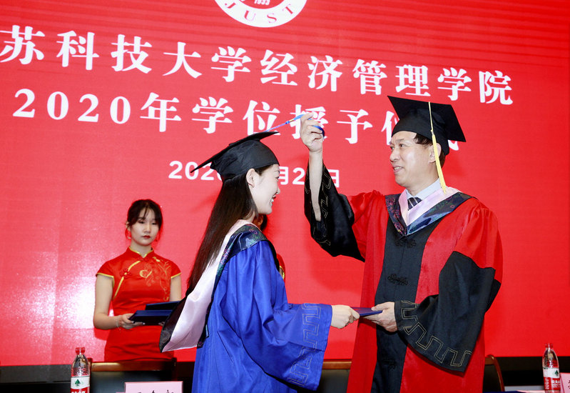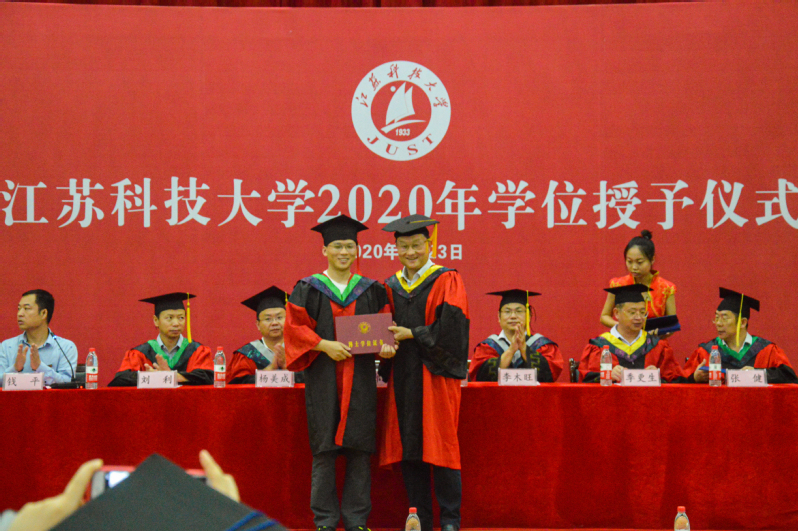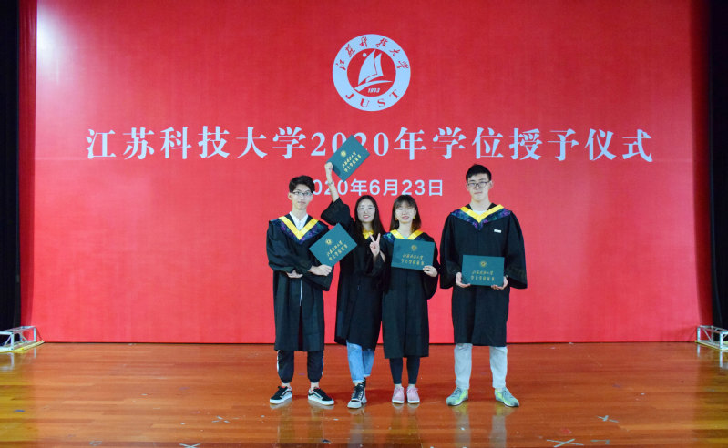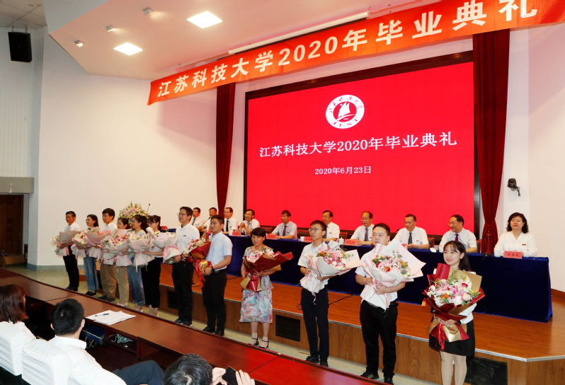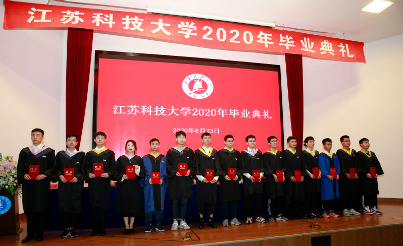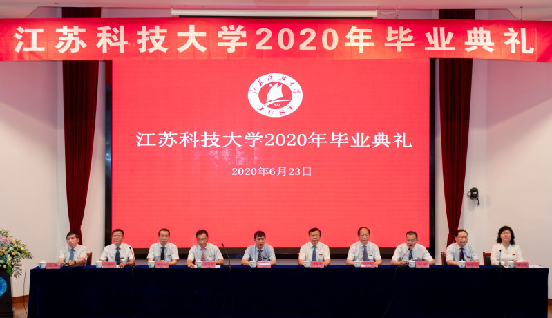 2020届毕业典礼暨学位授予仪式采用“学校+学院”、“线上+线下”相结合的方式举行。校党委书记葛世伦、校长周南平等全体校领导、党委常委,学位委员会成员,教师代表,95名毕业生代表在演讲厅主会场出席毕业典礼,在镇江东、南、西校区和张家港校区各分会场,2020届博士毕业生、硕士毕业生、全日制本科毕业生、继续教育本科毕业生、留学生毕业生相聚“云端”共飨青春盛宴,毕业典礼通过微博、Bilibili、抖音、移动和直播等平台同步直播,家长代表、校友代表等同步“云观礼”。毕业典礼由副校长汤建主持。