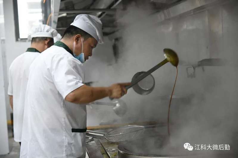 早上七点,校卫队田进就和同事们来到了新校区岗位上,他们主要负责搬迁现场的道路疏通和现场车辆引导,时不时还帮搬运行李的同学搭把手。来到新校区后,他感觉新校区环境特别好,在这里工作,也让人的心情特别好。后勤集团新校区西苑食堂负责素加工的刘顺梅已经在加工素菜了,今天第一天到这边上班,呼吸着新校区的空气,工作在宽敞明亮的操作间,感觉很好。十点左右,素菜都已经加工得差不多了。大厨赵勇6月15日就来新校区上班了,为了正式开业,他和同事们已经准备了很长时间,头天晚上就调试好新的炉灶,把开餐要用的东西都准备好,特别准备了十多个菜品,希望给前来就餐的师生留下好的印象。