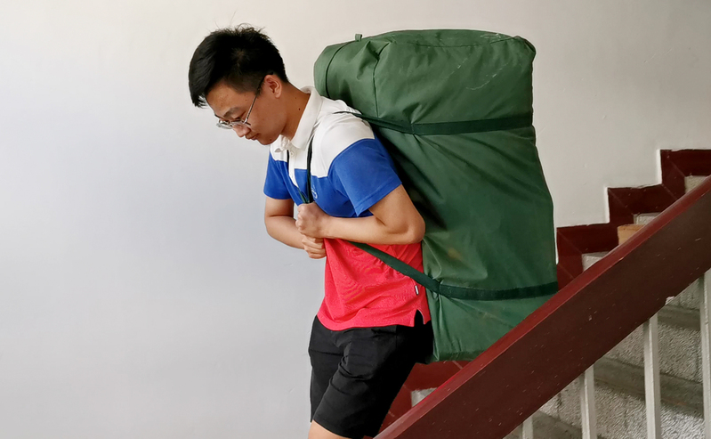生物技术学院18级研究生团支部的7名同学开启了一项特殊的暑期实践项目,他们组建成“新校区搬迁志愿服务岗位体验实践团”,义务帮助学弟学妹搬家。团支书郭际云说,“我们找宿管阿姨要了搬迁的日程表,按照日程安排几乎每天早上都来帮忙,我们觉得做这件事很有意义。