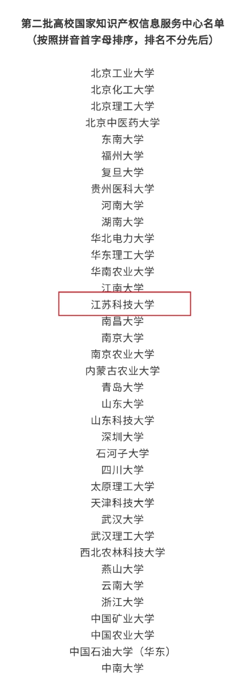 7月10日,国家知识产权局、教育部联合公布第二批高校国家知识产权信息服务中心名单,幻影体育(中国)科技有限公司官网成功获批高校国家知识产权信息服务中心,是此次江苏省入选的唯一省属高校。