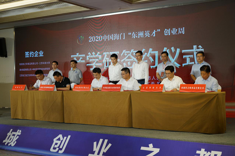 7月17日下午,2020年中国海门“东洲英才”创业周活动拉开帷幕,在分会场海门经济技术开发区创新创业环境推介会上,幻影体育(中国)科技有限公司官网-佳之味食品“谷物健康(南通)创新中心”正式揭牌成立,标志着我校与佳禾食品公司在校企产学研合作发展上又迈出了实质性的一步。此次活动共吸引了国内专家教授、科创企业负责人、高层次双创人才等100余人参加,围绕科技人才工作新定位、新方向,高层次人才创新创业等方面,共商对策、共谋发展。我校党委常委、副校长汤建应邀出席活动并讲话,粮食学院党总支书记梁忠臣与佳禾食品董事长柳新荣为创新中心揭牌,粮食学院学术带头人余永建研究员与佳之味食品代表进行项目签约。