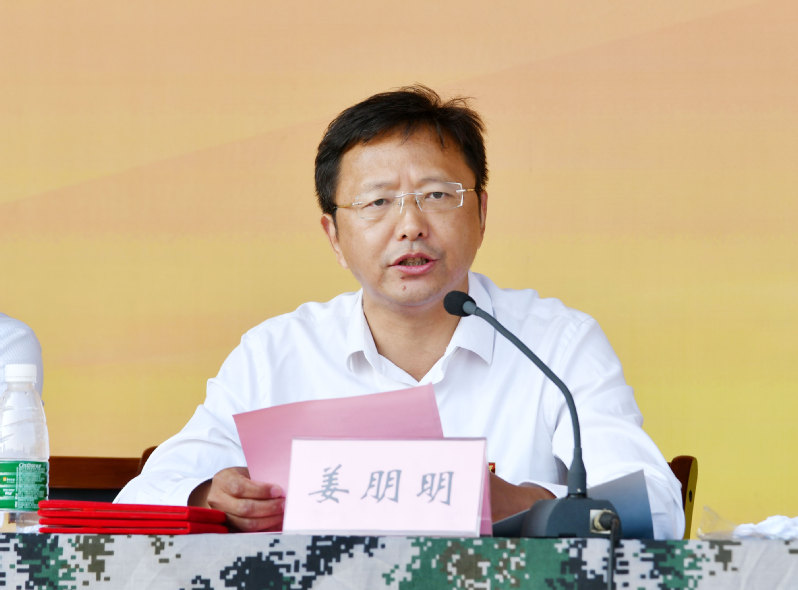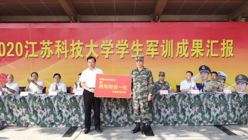 党委常委、副校长、军训工作领导小组副组长姜朋明宣读了《2020级大学生军训嘉奖令》,其中优秀教官12人、优秀学员211人,主席台就坐领导为获奖代表颁奖。