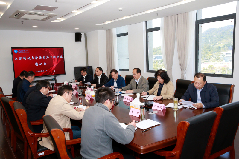 校纪委副书记、巡察办主任陶海洋做了题为《准确定位 促进发展 全力提升我校党委巡察工作质量》的工作交流,阐述了巡视巡察工作及其指导思想,介绍了2020年巡视巡察工作新要求,对校党委第三轮巡察工作实施方案作了说明,并对巡察工作纪律要求及重点环节进行了提醒强调。江苏大学纪委副书记、党委巡察办主任杨志春受邀作了题为《高校党委巡察工作实务》的辅导讲座,他围绕高校巡察工作的特点和重点、巡察准备工作实务、驻点巡察工作实务、撰写巡察报告等方面进行了全面详实的阐释,通过穿插其中的校内巡察工作案例,分享了兄弟高校在巡察工作中的宝贵经验和做法,为我校巡察组开展并做好第三轮巡察工作提供了有效的指导。