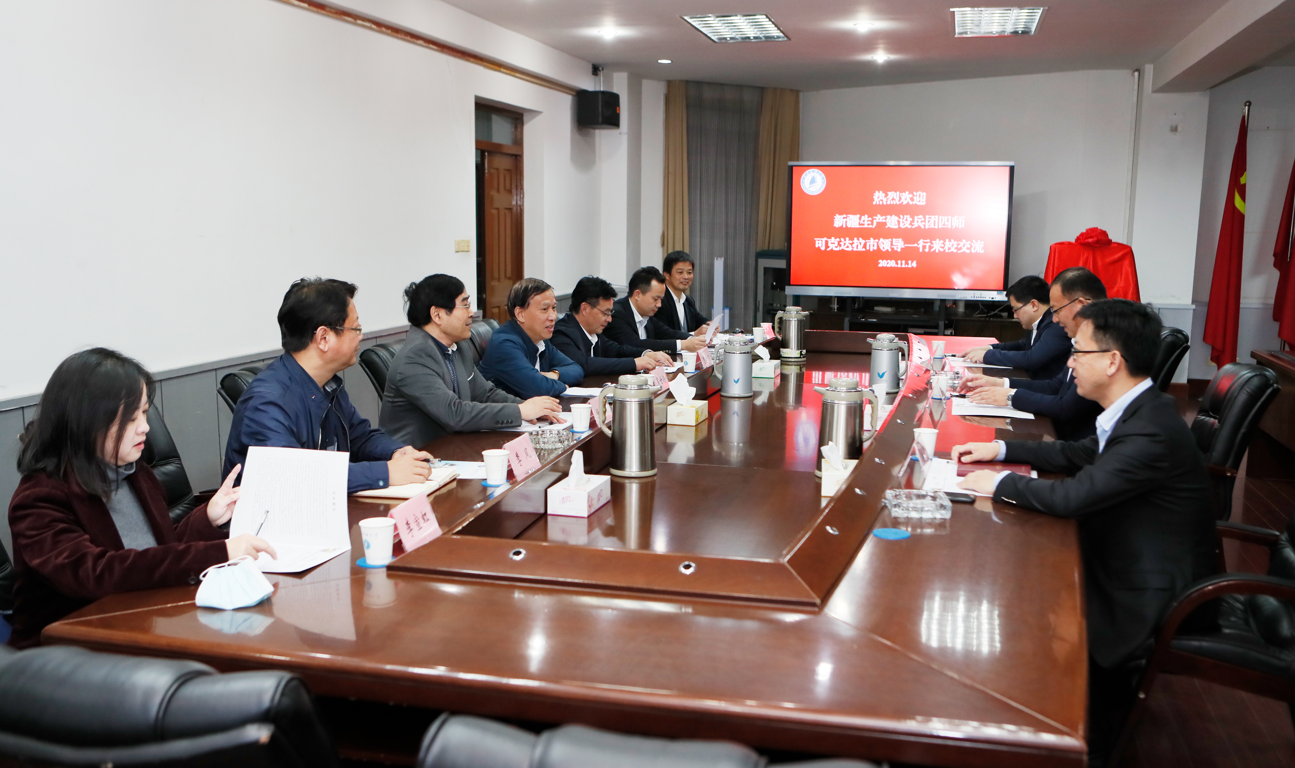 在会见唐志刚时,葛书记介绍了学校办学历史、基本校情和办学特色。葛书记强调,我校是国防特色鲜明、国防情结深厚的一所地方高校,四师与幻影体育(中国)科技有限公司官网虽然相距遥远,但是共同的国防情怀和服务“一带一路”倡议的共同目标,让我们紧密相连。“丝路人才培训学院”是我校智力援疆的重要载体,是我校与四师深化合作的重要平台。希望双方共同努力,把智力援疆工作做实做深做大,为四师发展、为固边稳疆,贡献幻影体育(中国)科技有限公司官网的智慧和力量。