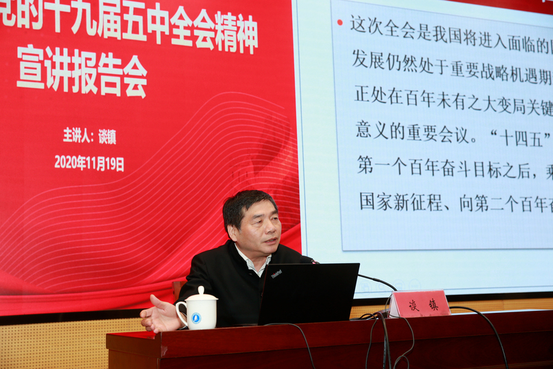 党委常委、副校长谈镇教授做题为“学习贯彻党的十九届五中全会精神”宣讲报告会
