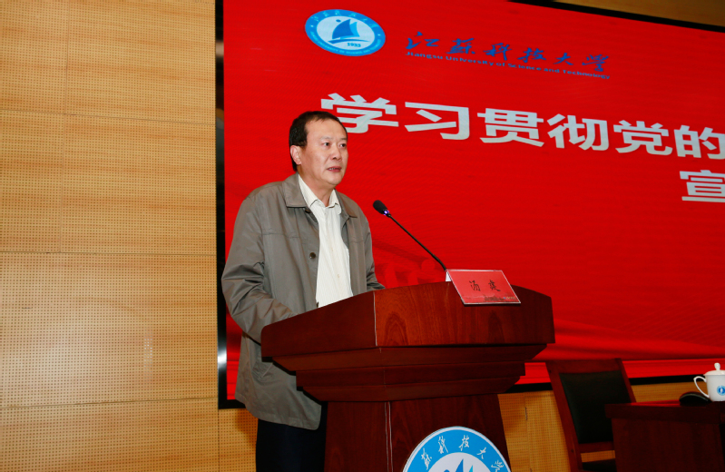 党委常委、副校长谈镇教授做了题为“学习贯彻党的十九届五中全会精神”宣讲报告会。校党委常委、副校长汤建主持,党委书记葛世伦、党委副书记、校长周南平、党委副书记许俊华、党委常委李恒川、周春燕、刘新波参会。此外,宣讲会还邀请到镇江高投指挥部副总指挥马士良参会。全体中层干部,二级党组织中心组成员,马克思主义学院师生代表、辅导员等300余人聆听报告。