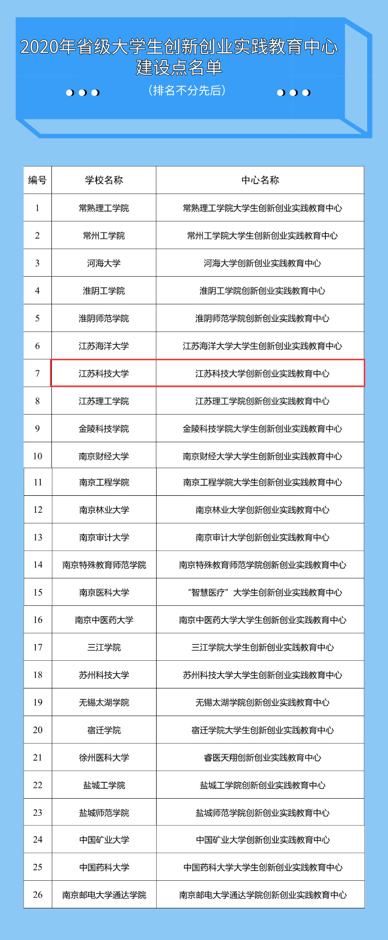 近日,江苏省教育厅公布了2020年省级大学生创新创业实践教育中心遴选结果(苏教办高函〔2020〕27号),我校申报的“幻影体育(中国)科技有限公司官网创新创业实践教育中心”成功入选。