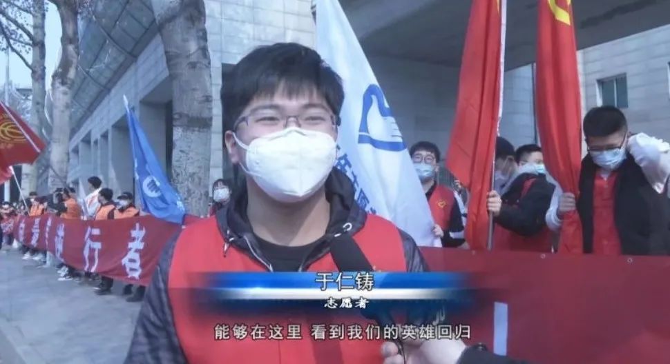 于伦铸在线下组织志愿者迎接援鄂医护人员并接受大连金普新区电视台采访