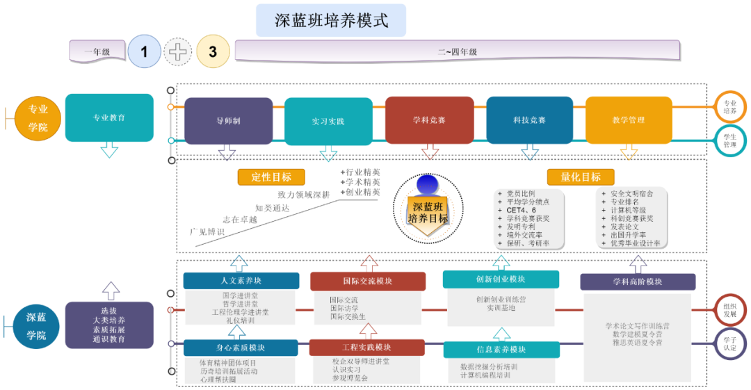 严把质量,优化考评遴选。通过综合考核,动态调整和滚动竞争,抓牢深蓝班培养质量。新生遴选更严苛,政策更优化。
