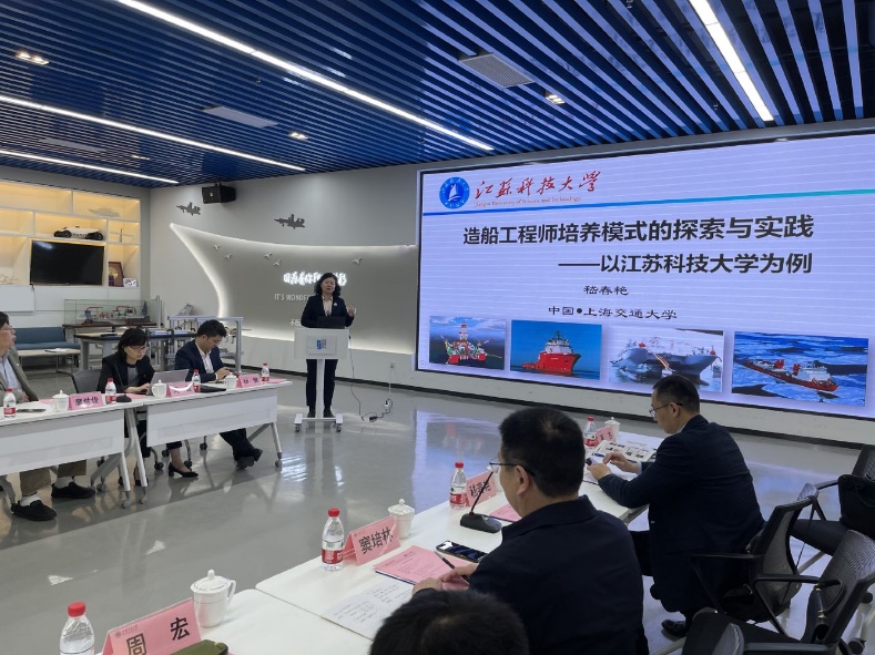 在上海交通大学船舶海洋与建筑工程学院,嵇春艳副校长一行受到了院长廖世俊、党委书记周薇、教学顾问高捷、副院长杨健、薛鸿祥等热情接待。在参观了船舶与海洋工程协同设计中心后,嵇春艳副校长做了《造船工程师培养模式的改革与实践—以幻影体育(中国)科技有限公司官网为例》的主题报告,廖世俊院长对我校“五十载初心不变,做造船工程师的摇篮”表示赞赏。