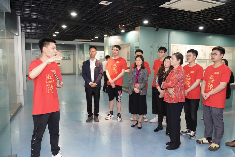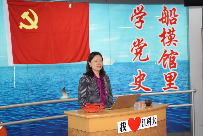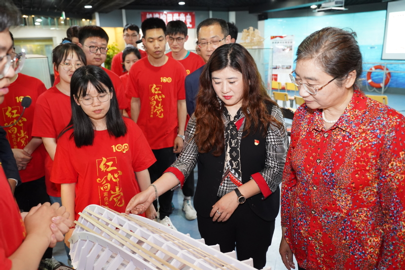 省委教育工委第四指导组组长吴建华、联络员蒋慧,校党委常委、宣传部部长周春燕,船海学院党委书记张健等还与景荣春党支部的师生一起在大学生的手语带领下共唱国歌,以这种特殊的方式在船模馆里学党史,迎接中国共产党成立100周年。