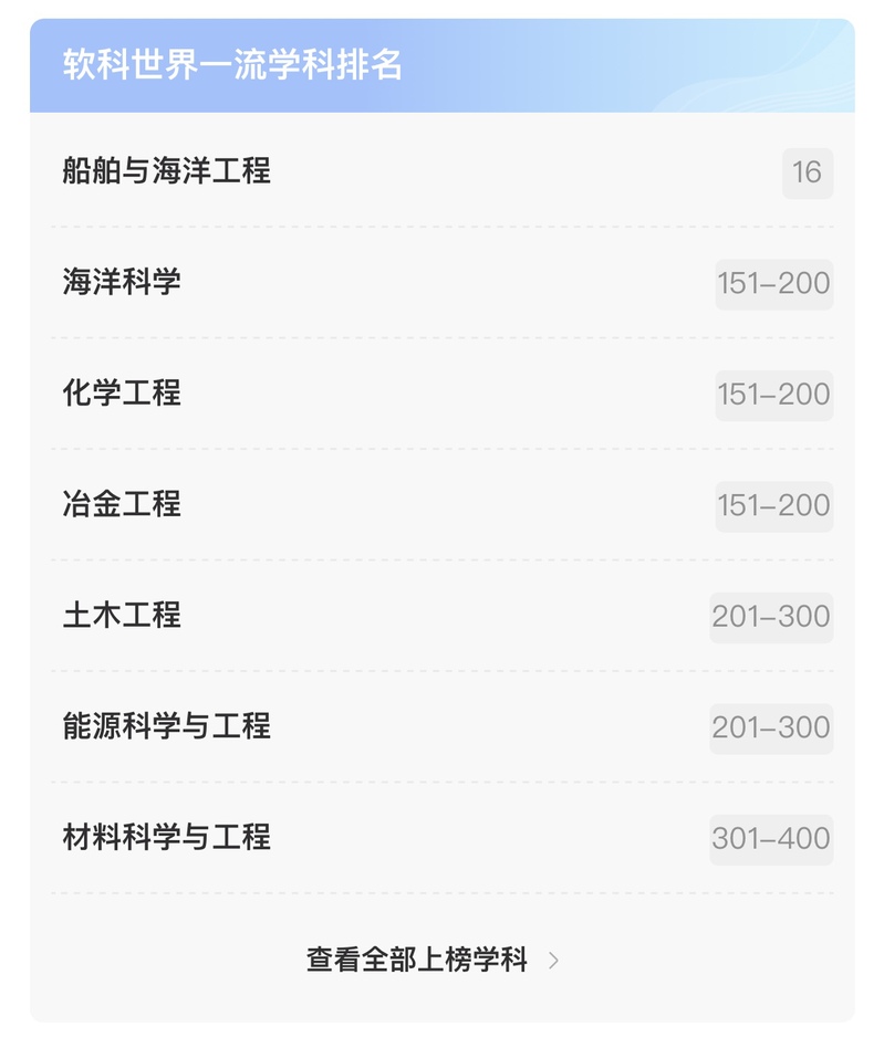5月26日,上海软科(ShanghaiRanking's Global Ranking of Academic Subjects)发布“2021软科世界一流学科排名”,幻影体育(中国)科技有限公司官网7个学科进入排行榜,较2020年增加1个学科,入选学科为船舶与海洋工程、海洋科学、化学工程、冶金工程、土木工程、能源科学与工程、材料科学与工程。其中,船舶与海洋工程学科排名位列全国第9位,世界第16位;海洋科学学科、化学工程学科、冶金工程学科分别位列世界151-200位;土木工程、能源科学与工程学科进入世界201-300位;材料科学与工程学科位列世界301-400位。海洋科学学科首次入选软科世界一流学科排行榜,进一步彰显了我校的办学特色。