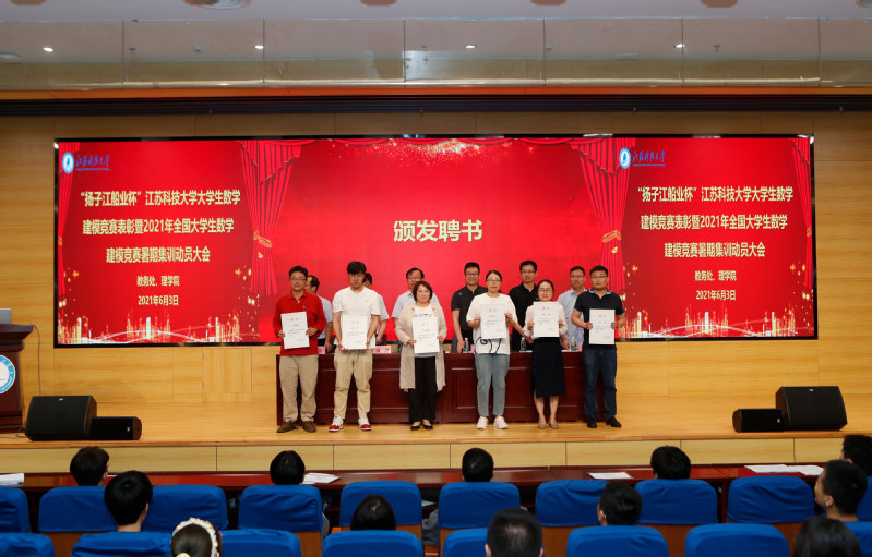 理学院党委书记朱金宣读学生表彰决定,江苏扬子江船业集团党委书记副总经理张宏飞宣读受聘教师名单,与会领导为获奖学生以及受聘教师颁发奖状及聘书。获奖学生代表朱士悦与受聘教师代表徐祖润分享参赛体会,号召大家撸起袖子加油干, 一同发扬”咬定青山不放松,立根原在破岩中”的竹石精神, 用优异的成绩为学校争光。理学院院长戴俊宣读暑期集训方案。