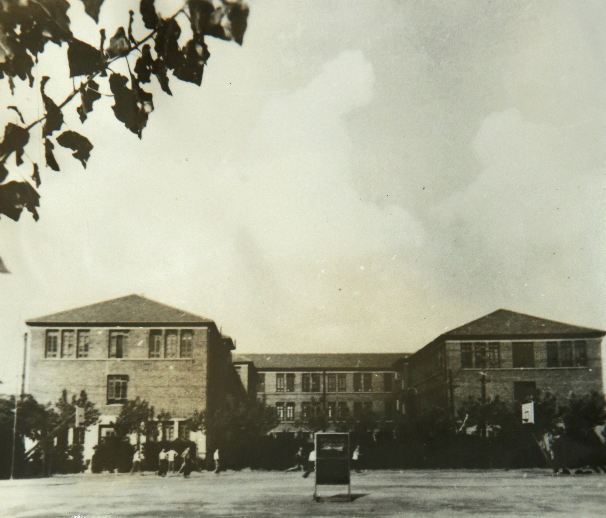学生在上海船舶工业学校教学大楼前留影