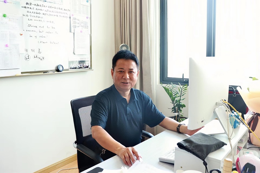王平于2019年8月份作为学科带头人被学校引进,虽已过了知天命的年纪,但仍然保持着高度自律的治学态度。他一周7天“两点一线”往返于学校与家之间:几乎每天清晨乘坐6:40的校车,7:10到文理大楼进入工作状态。“坚持阅读最新的文献会让你保持和这个世界的密切链接,而科研行动的数据和工具可以从文献中发掘”,王平在科研方面聚焦translanguaging进行阅读和研究,每当订阅的期刊在邮箱提示有新文章,他都会第一时间获取,再打印下来和课题组的老师同学们一起研读。一学期下来,他的办公桌就被一叠叠摞起来的文献包围了,所有打印稿堆起来有1米多高,像一座小山一样。