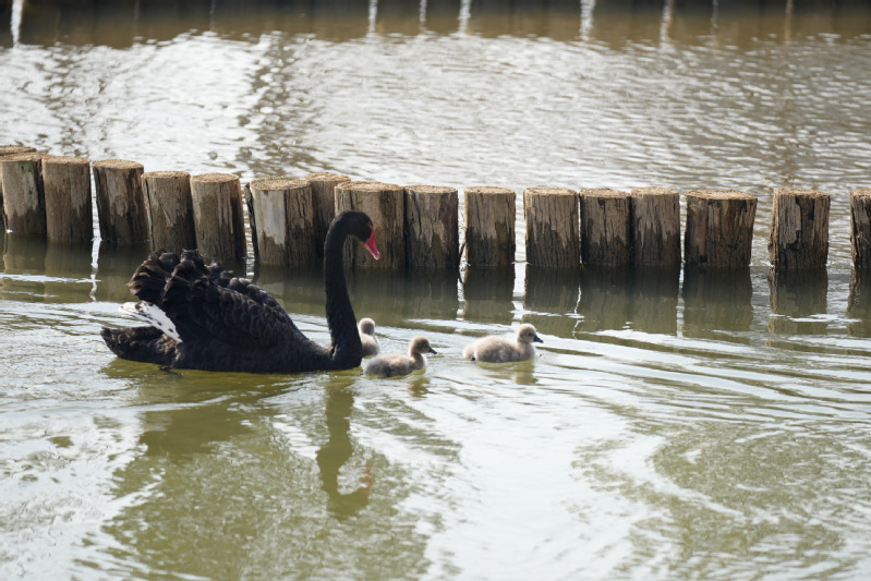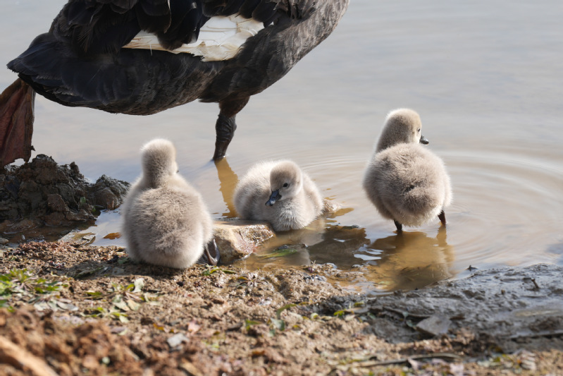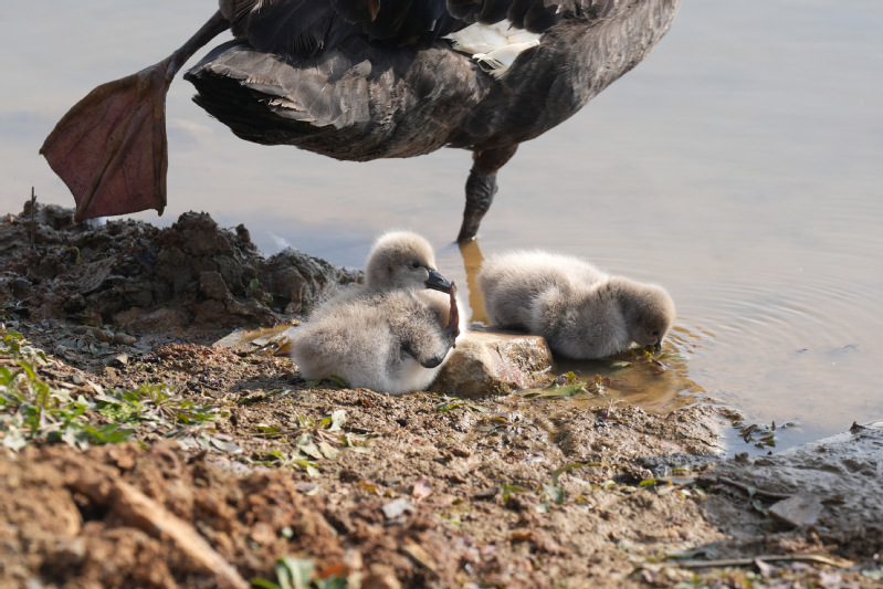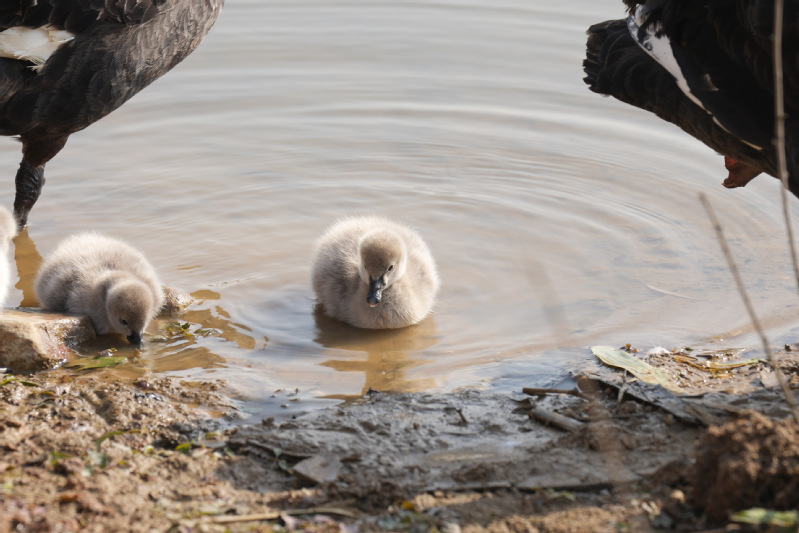 出生不久,黑天鹅幼崽们跟随父母在海韵湖中游弋,悠闲地晒着太阳。一身灰色的绒毛,扁长的嘴喙,小家伙们憨态可掬的神态引得一批又一批师生前来驻足观看。