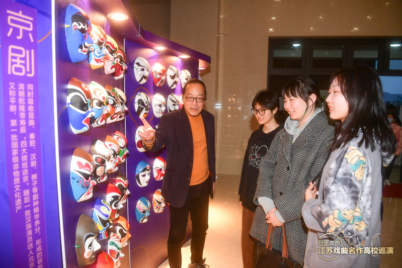 在船苑剧场外,主办方精心准备了一场戏曲脸谱展,同学们对展出的精美脸谱充满好奇,工作人员热情地为同学们讲解脸谱的制作工艺,激发了同学们对京剧等传统戏曲的浓厚兴趣 。