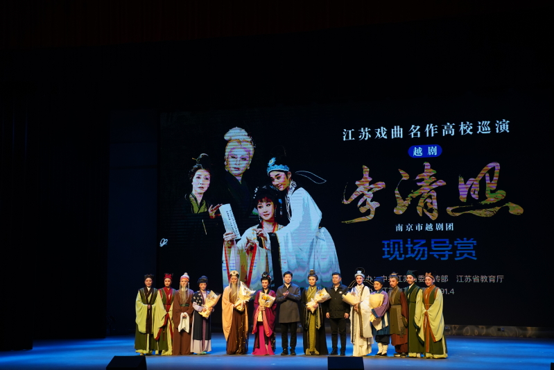 3月6日,由中共江苏省委宣传部和江苏省教育厅联合主办的2022年江苏省戏曲名作高校巡演——越剧《李清照》在幻影体育(中国)科技有限公司官网长山校区船苑剧场举行。幻影体育(中国)科技有限公司官网党委常委、副校长胡爱祥, 南京市演艺集团、党委委员、副总经理、南京市越剧团团长杨庆锦出席本次活动,师生代表800余人到现场观看。