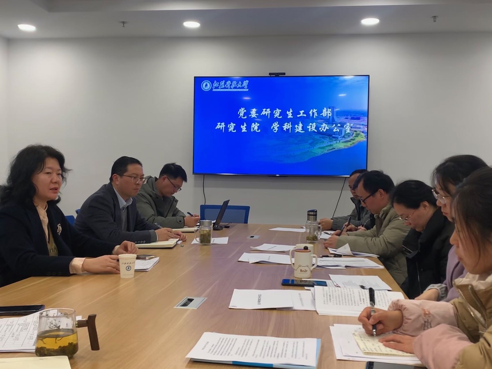 研究生院各科室围绕2023年学校重点工作及部门重点工作的学科建设、研究生招生、培养、学位授予、导师管理、学生管理等方面进行了汇报。