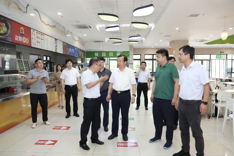 在东苑餐厅,周南平校长询问了暑期食堂的菜品以及防暑降温饮品的准备情况,现场观看了“桌面12315”的演示,希望后勤员工不断提高服务质量,让师生在校用餐如回家一样。同时要关注晚上夜宵的供应,拓展服务内容,更好地服务师生。特别是要用好“桌面12315”,师生提出意见建议要做到快速响应。