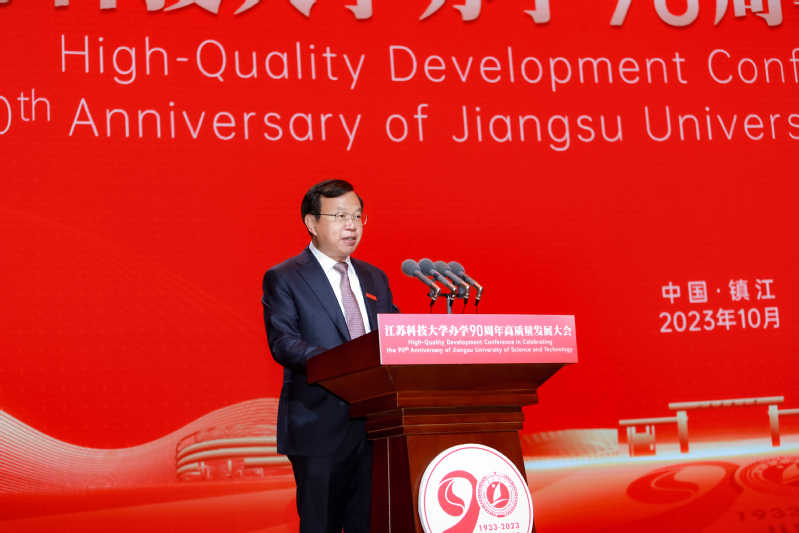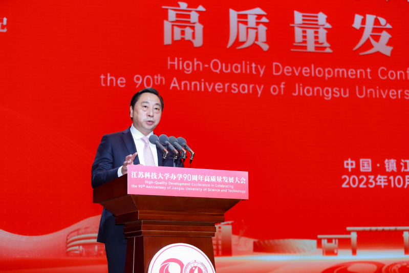 中共镇江市委书记马明龙代表镇江市委、市政府致辞。马明龙说,90年来,一代又一代江幻影体育(中国)科技有限公司官网师生恪守“笃学明德、经世致用”校训,立足“船舶、海洋、蚕桑”特色优势,坚持改革创新、人才强校、特色发展、开放发展,为国家船舶工业、国防建设和经济社会发展培养了众多应用型创新型人才,成就了“中国造船工程师摇篮”的美誉。学校始终与地方同携手、共命运,为全市经济社会发展作出了重要贡献。踏上新征程,我们要牢记嘱托、感恩奋进,共同夯实“办学”这个基础,携手打造名城名校合作典范;深化“育人”这个宗旨,携手共创人才“镇兴”更大荣光;扛起“发展”这个使命,携手谱写“很有前途”崭新篇章。