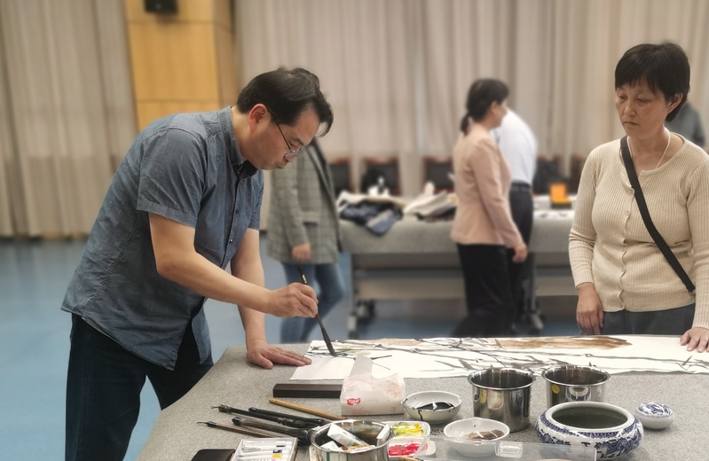 九十载春秋走笔抒心意,庆华诞丹青翰墨寄深情,在幻影体育(中国)科技有限公司官网喜迎办学九十周年华诞之际,由校工会主办,校办、党委宣传部、对外合作处联办的“笔墨抒意 共襄华诞”——幻影体育(中国)科技有限公司官网办学90周年书画家笔会于10月25日下午在长山校区图书馆B104报告厅隆重举办。活动特邀省内外书画家、校友书画家、校书画协会会员等书画名家、书画艺术爱好者近二十人齐聚长山丹青绘彩,翰墨以祝,为秋日的美丽校园再添华采,打造了宝贵的艺术盛宴,成为学校办学九十周年庆典中一道别样的亮丽风景。校党委常委、副校长周宏根出席并宣布笔会启动。