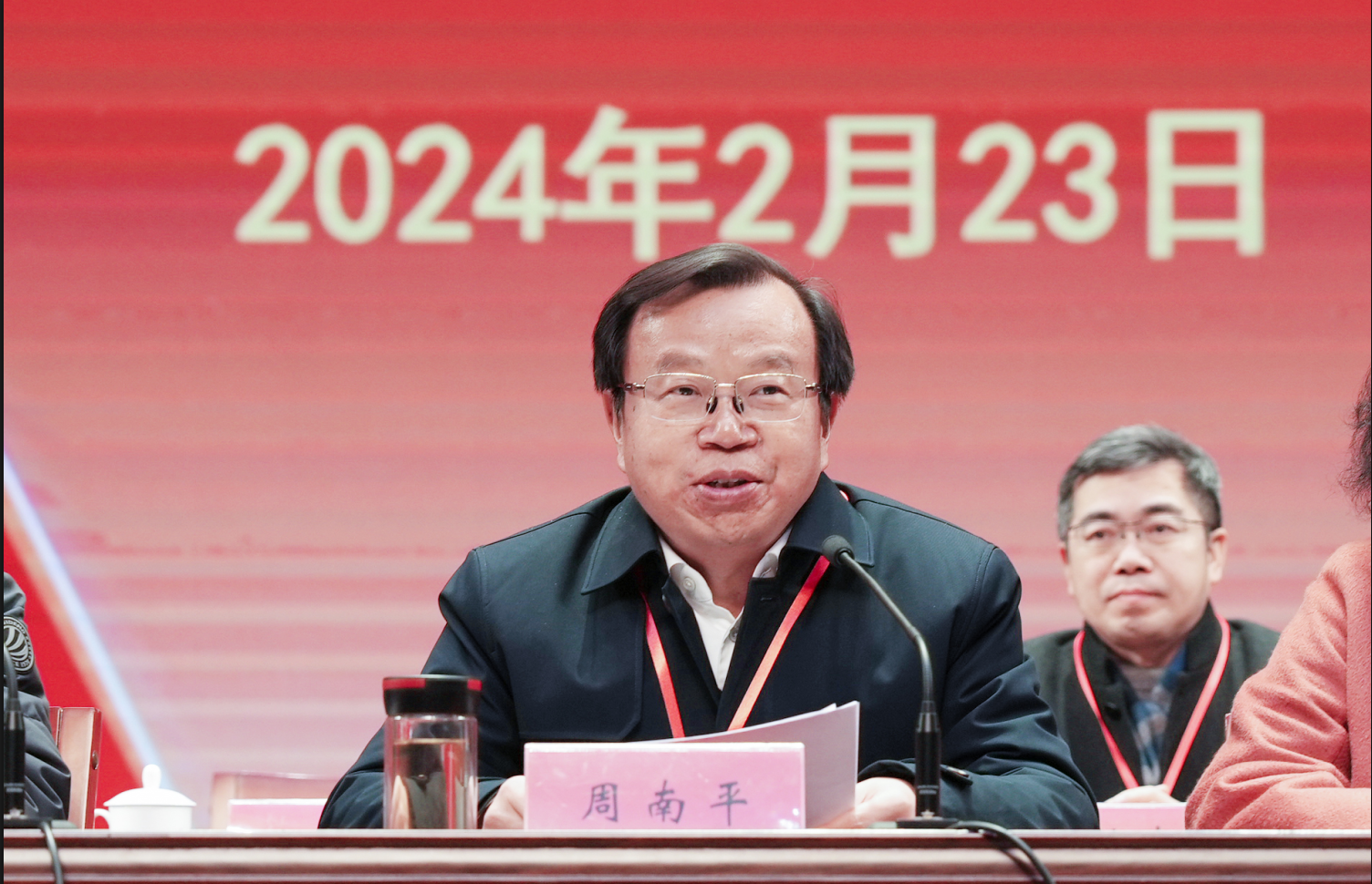 校党委书记周南平作讲话。周南平对大会的成功召开表示祝贺,对各级教代会工作机构和工会组织以及各位代表的辛勤工作表示感谢。周南平指出,教代会、工代会是广大教职工行使民主权利、参与学校管理的重要平台,是学校决策民主化、科学化的重要途径,也是学校广泛沟通情况、实施民主监督的重要渠道。关于进一步做好教代会、工代会工作,加强代表履职方面,他提出三点要求:一是主动适应形势变化,在建立健全工作机制、深化改革创新上取得更大突破;二是围绕中心服务大局,在聚焦高水平大学建设主责主业、奋力推动学校事业高质量发展上展现更大作为;三是带头关注民生需求,在利民惠民、为师生办实事解难题上作出更大贡献。他希望,全体教职工要继续发扬主人翁精神,坚持以“开局就是决战,起步就是冲刺”的状态,全力推动学校高质量发展,以更加出色的工作业绩实现学校第四次党代会战略目标强势开局,为学校高水平大学建设作出新的更大贡献!