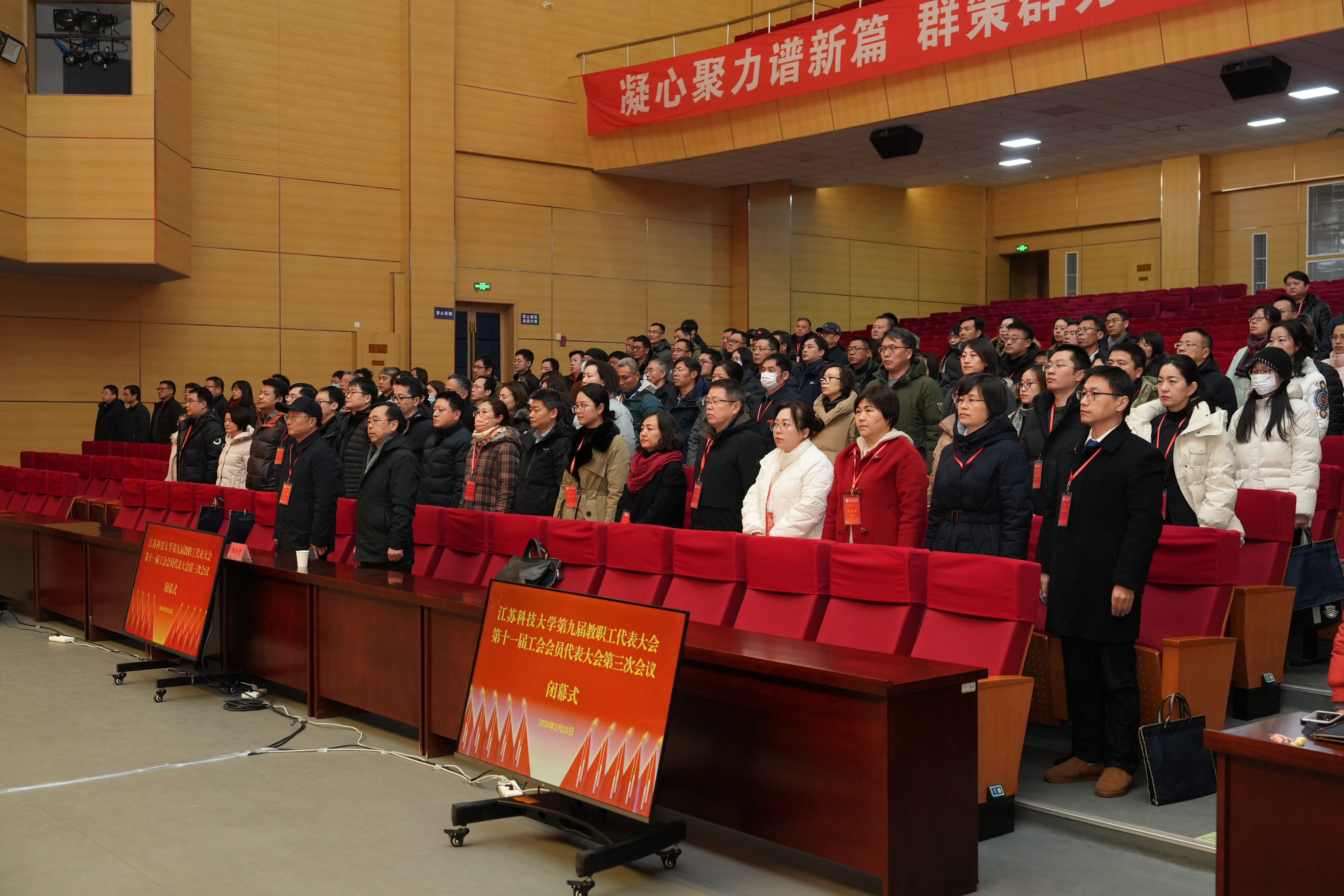 最后,校工会主席、原校党委副书记景旭文致闭幕词。他总结,在学校党委的领导下,经过大会主席团、全体代表的共同努力,圆满完成了大会预定的各项任务,取得了预期的效果。各位代表以对学校事业高度负责的主人翁精神,围绕主要议题提出了许多建设性的意见建议,充分彰显了广大教职工对学校的深厚感情和学校事业发展的殷切期盼。希望大家会后认真学习、宣传和贯彻落实大会精神,同心同德,拼搏进取,全力以赴高标准地完成各项目标任务,促进学校各项事业又好又快发展。