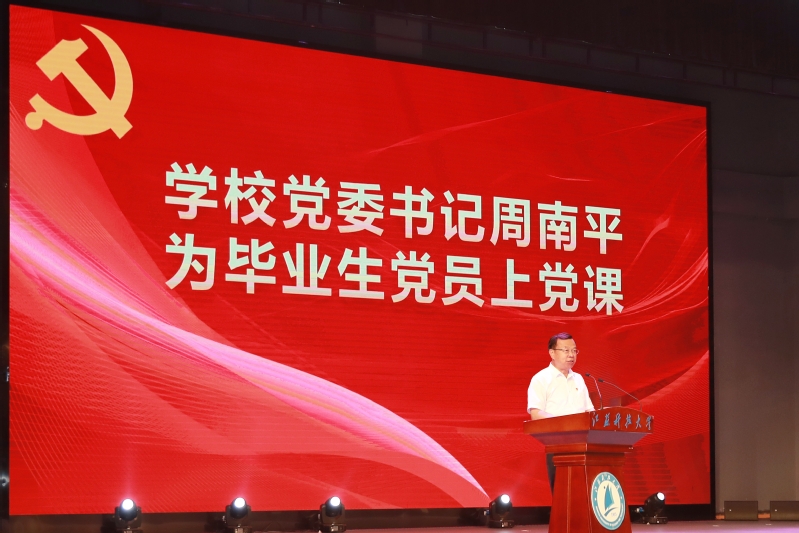 校党委书记周南平为毕业生党员讲授了一堂生动的党性教育与党纪教育党课。他要求全体毕业生党员:一是不忘初心,坚定信仰,在工作和生活中,不断提高党性修养水平,始终按照共产党员的标准严格要求自己,用一个共产党员的远大理想照亮自己;二是实干笃行,勇担使命,率先发挥示范带头作用,保持对真理与科学的敬畏心和好奇心,通过学习来明理、辨伪、求是,在各自进入的新领域扎根向下、久久为功,力争成为行家里手、国之栋梁;三是心存敬畏,行有所止,严格遵守党的政治纪律、组织纪律、廉洁纪律、群众纪律、工作纪律和生活纪律,树立正确的权力观、地位观、利益观,加强自我监督,永葆党员本色。