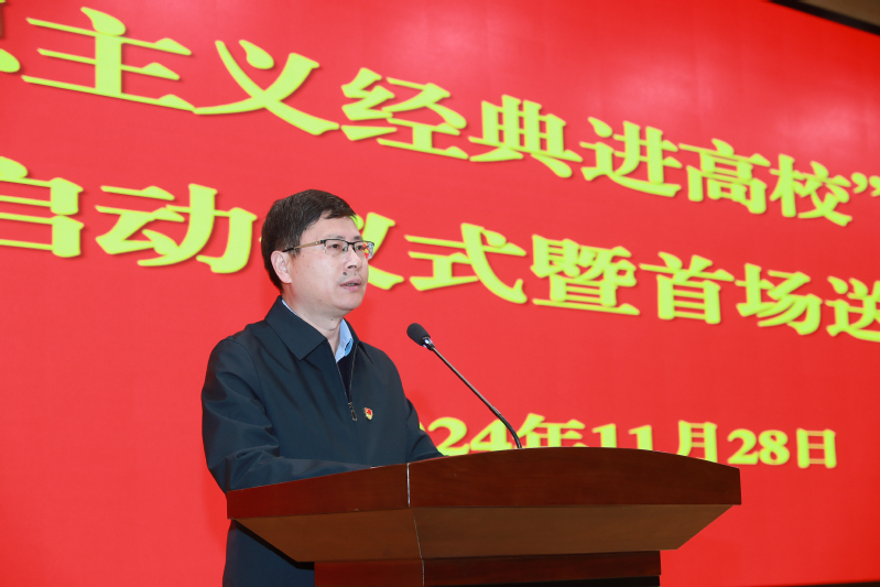活动开始,市委党校常务副校长朱定明致辞。他从推动干部教育培训、促进重大课题成果产出、推进党建工作的深层次发展等角度,回顾了近年来党校与驻镇高校在各方面展开的全方位合作,并详细介绍了“马克思主义经典进高校”系列活动。他希望通过系列活动的开展,助力高校播撒红色种子,培养红色接班人。