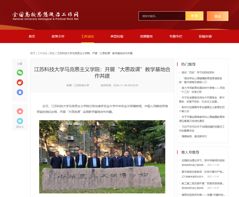 全国高校思政网报道马克思主义学院开展“大思政课”实践教学基地合作共建