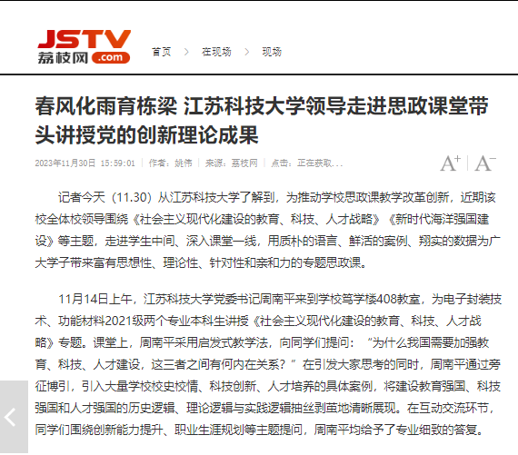 荔枝新闻报道校领导走进思政课堂带头讲授党的创新理论成果