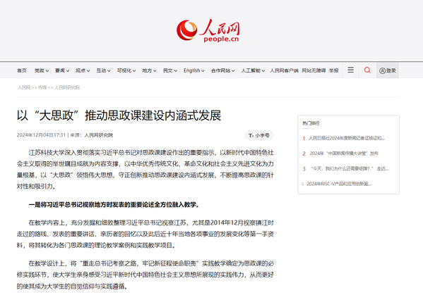 人民网专题报道学校以“大思政”推动思政课建设内涵式发展