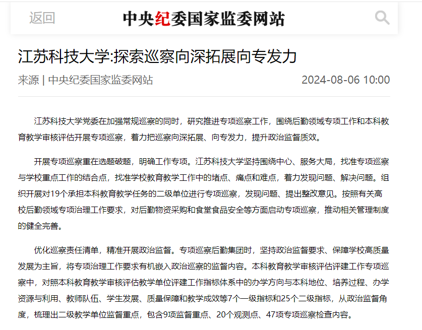 扎实开展党纪学习教育。党委部署党纪学习教育工作,各基层党组织加强组织领导,推进党纪学习教育常态化长效化,党员领导干部赴省委党校开展“零距离”警示教育。中央纪委国家监委网站报道学校《探索巡察向深拓展向专发力》经验性文章。
