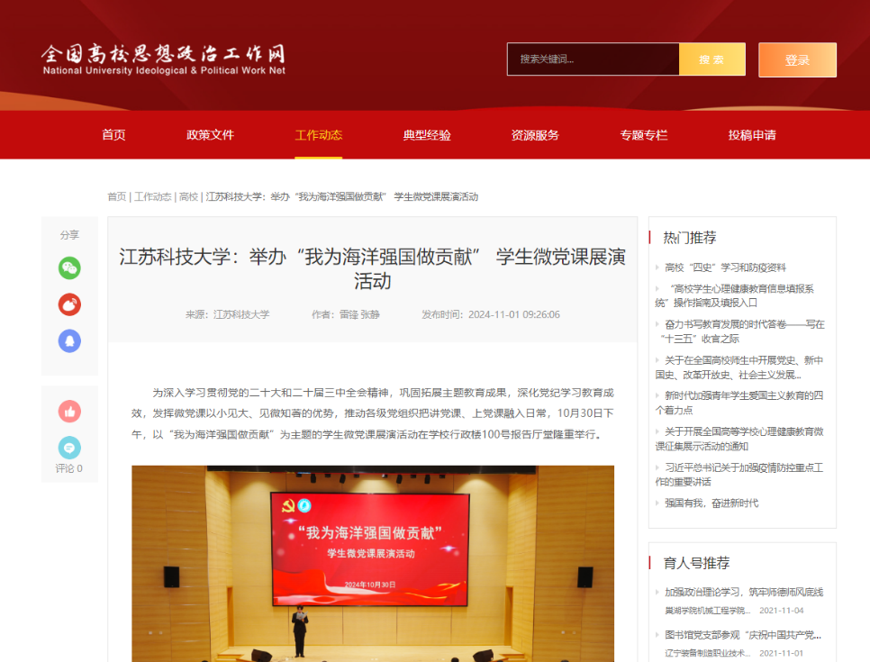全国高校思政网报道学校“我为海洋强国做贡献”学生微党课展演活动