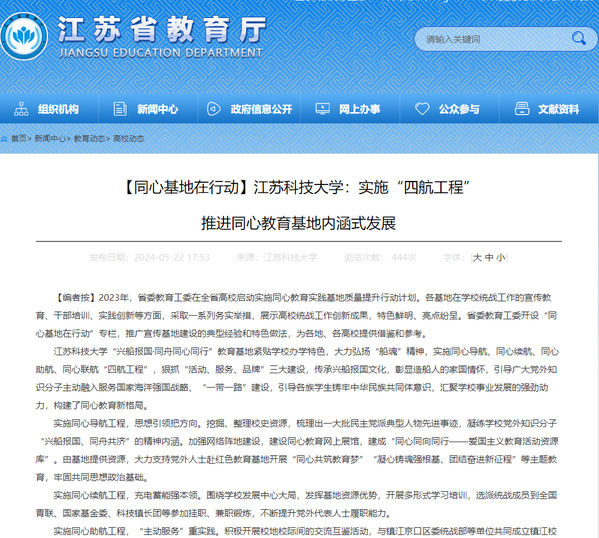 江苏省教育厅官网报道学校推进同心教育基地内涵式发展