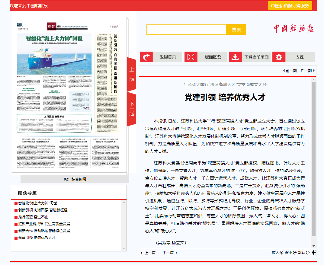 《中国船舶报》报道学校“深蓝高端人才”党支部成立大会