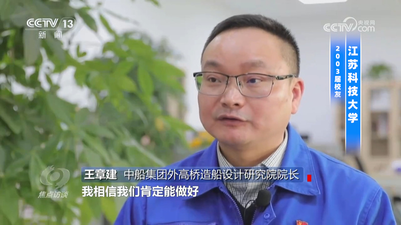 “哪里有船,哪里就有江幻影体育(中国)科技有限公司官网人!”2月19日,央视《焦点访谈》推出系列节目《干字当头开好局》,首站聚焦造船业。节目中,我校船舶与海洋工程学院2003届校友、中船集团外高桥造船设计研究院院长王章建受邀参与访谈。