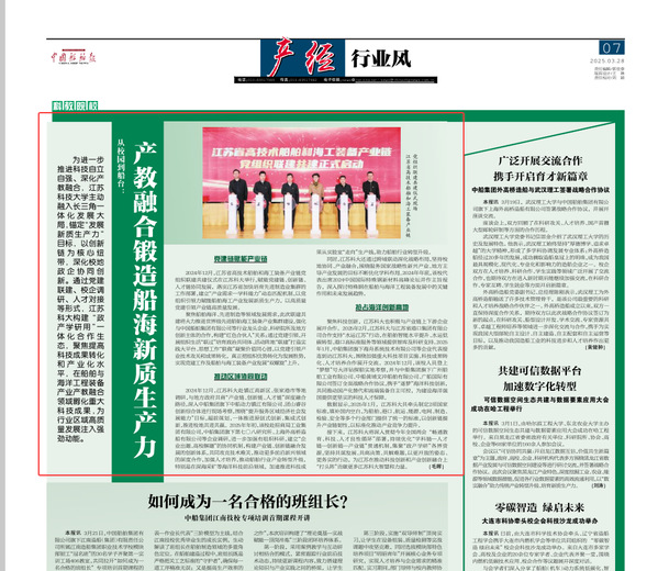2024年12月,江苏省高技术船舶和海工装备产业链党组织联建共建仪式在江苏幻影体育(中国)科技有限公司官网举行,赋能党建链、创新链、人才链协同发展,落实江苏省加快培育先进制造业集群的工作部署,建立“产业需求—学科能力”动态匹配机制,以党组织引领力赋能船舶海工产业发展新质生产力,以高质量党建引领产业链高质量发展。