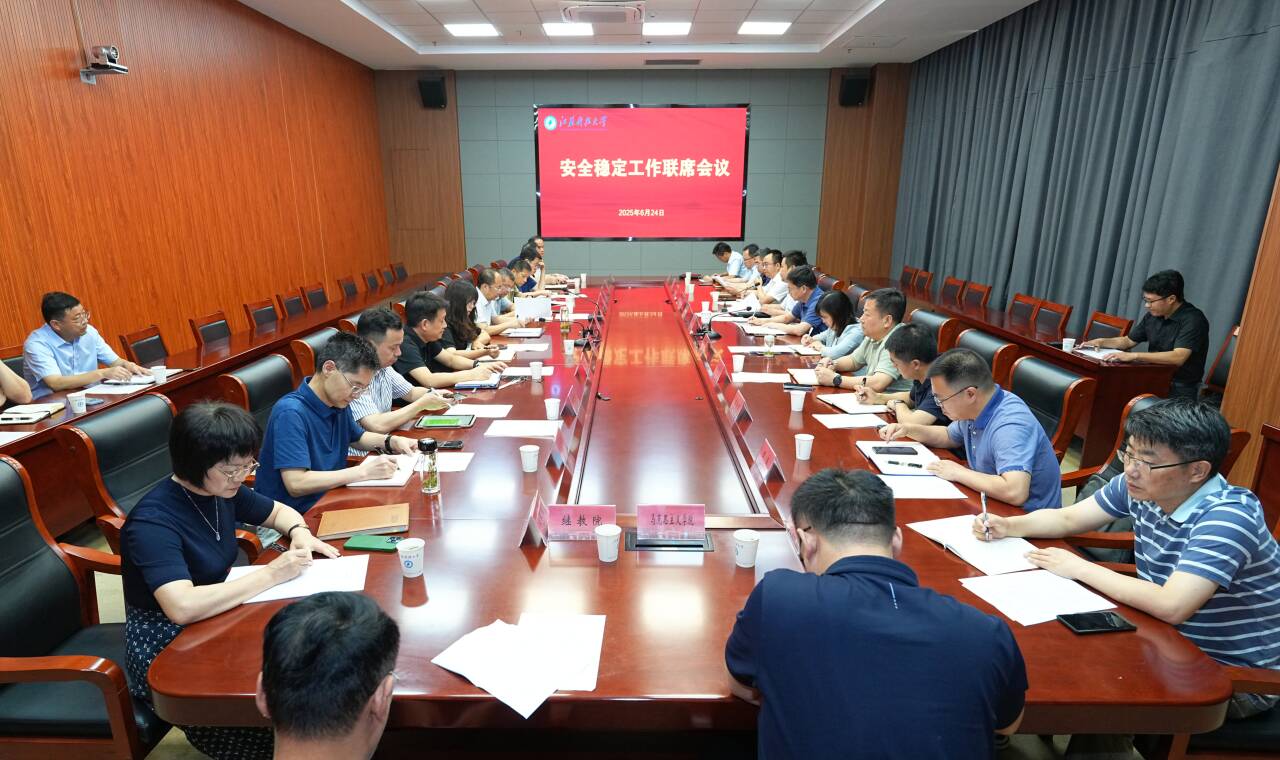 为进一步提升校园安全管理水平,6月24日上午,学校在长山校区行政楼200号会议室召开安全稳定工作联席会。学校党委常委、副校长、安全稳定工作委员会常务副主任潘锦全,党委常委、党委宣传部部长周春燕出席会议,安稳办主任、安保处处长徐晶主持会议。