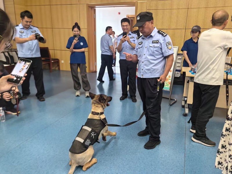 在禁毒互动小屋体验环节中,活动双方精心设置了多个功能区域:识毒防毒区展示30余种毒品仿真模型;戒毒所民警现场讲解新型毒品伪装形式,如“奶茶”“跳跳糖”等;VR沉浸体验区通过模拟吸毒后的幻觉和身体机能衰退等场景,增强了警示效果;“吸毒后的你”设备借助人脸识别、AI算法及虚拟现实技术,让学生直观感受吸毒对身心的毁灭性影响。此外,还有戒毒项目展示区和缉毒犬工作展示。