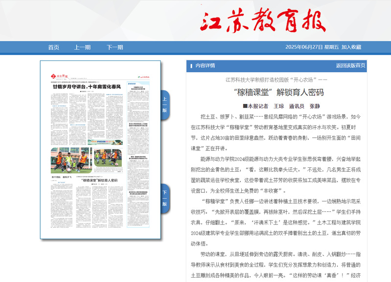 浸润式育人带来的成长,清晰可见。粮食学院2021级质量与安全专业学生张冠告诉记者,第一次下地手忙脚乱,满身泥巴,心里直打退堂鼓。“可当在食堂窗口看到自己亲手种出的蔬菜变成盘中餐时,强烈的成就感和自豪感油然而生,所有的辛苦都值了。”