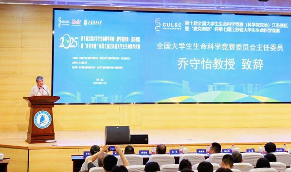 乔守怡向获奖团队表示祝贺,并向我校承办大赛付出的努力表示衷心的感谢。他表示,全国大学生生命科学竞赛坚守“兴趣驱动、科学研究、能力提升”的初心,为在校大学生搭建连接梦想与实践、探索与创新的桥梁,他鼓励青年大学生“弘扬科学精神,勇攀生命科学高峰”。江苏省大学生生命科学竞赛监督委员会主任、南京大学华子春教授作大赛总结发言。