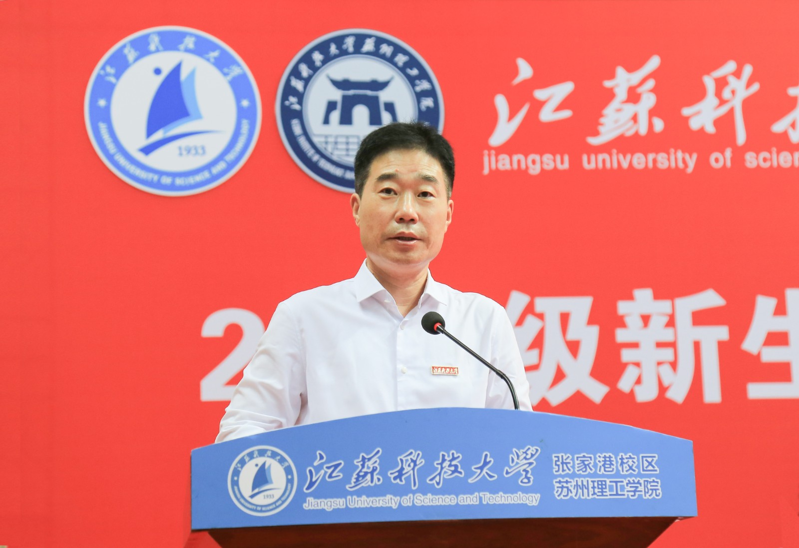 杨建新勉励全体新生,在“船魂”精神与张家港精神的激荡中砥砺成长。他提出三点希望:一是立志为先,与时代同行。要自觉听从党和人民召唤,坚定理想信念,厚植家国情怀,勇担历史使命,奋力书写挺膺担当的青春篇章。二是勤学善思,炼青春本领。要保持好奇心和求知欲,打破思维定势,以踏实的学习积淀智慧,以独立的判断应对变化,练就面向未来的硬本领和真本事。三是全面发展,展卓越作为。要涵养高尚品德,以真善美的眼光看世界,感恩父母师长的培育,在回馈社会中实现人生价值。