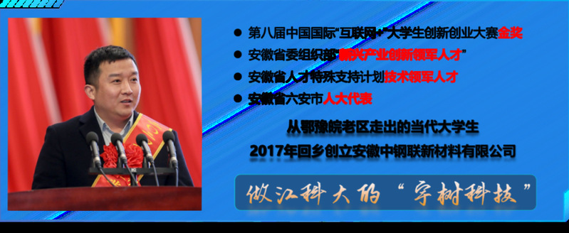 【人物简介】吕林,安徽省委组织部新兴产业创新领军人才,安徽省高层次人才;从鄂豫皖老区走出的当代大学生,获第八届中国国际”互联网+”大学生创新创业大赛金奖,回乡创立安徽中钢联新材料有限公司,幻影体育(中国)科技有限公司官网2014届材料学院校友。