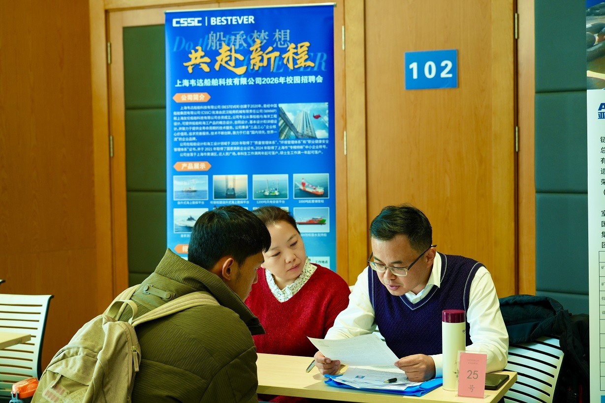 江苏船协相关负责人表示,高素质人才是船舶海工产业高质量发展的核心驱动力。此次专场招聘会是协会践行服务宗旨、搭建校企合作平台、助力会员单位引才、赋能行业人才队伍建设的重要举措。未来,协会将持续聚焦企业引才需求与高校育才方向,常态化开展校园招聘、校企合作交流等活动,进一步深化产教融合、科教融汇,推动行业人才需求与高校人才培养精准匹配,为江苏船舶海工产业高质量发展注入源源不断的人才动力。